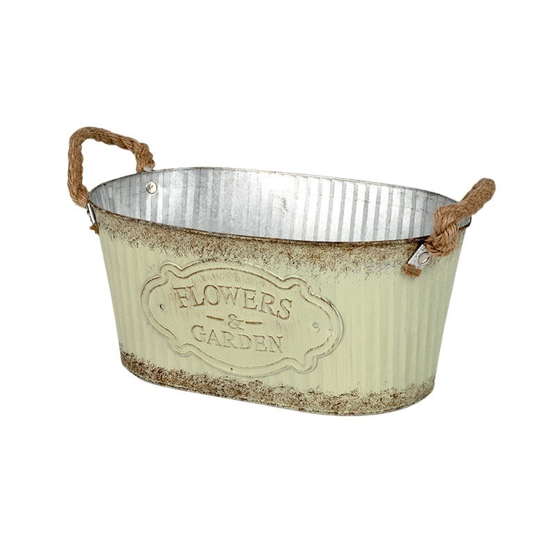 Castron Oval Andretta Din Staniu Cu Funie Și Gura De Scurgere Verde 24X14,5X11Cm