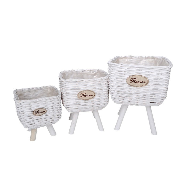 Castron Pătrat Din Lemn Cu Fantă Pe Suport Din Lemn Cu Inscripție Flower Alb 30X30X 22/37Cm S/3