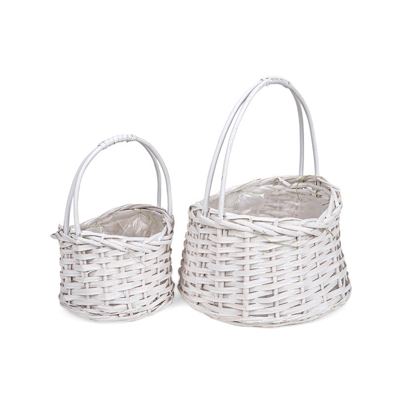 Coș Din Lemn Cu Fantă Ovală Cu Toarte Set Alb 23X17X13,5/30Cm S/2