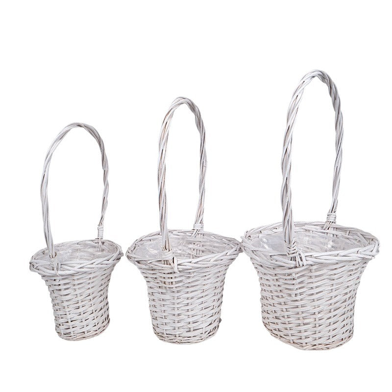 Coș Din Lemn Despicat Cu Toarte Set Alb 35X25/63Cm S/3