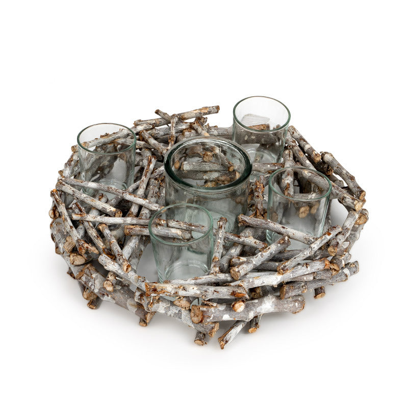 Coroniță Din Lemn Tăiat Suport Lumânare Gri 30X10Cm