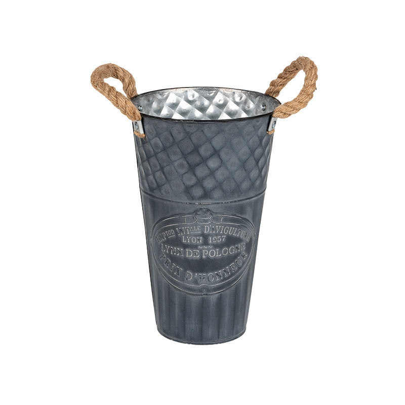 Vaza De Metal Loretta Cu File De Frânghie Gri 18,5X30Cm